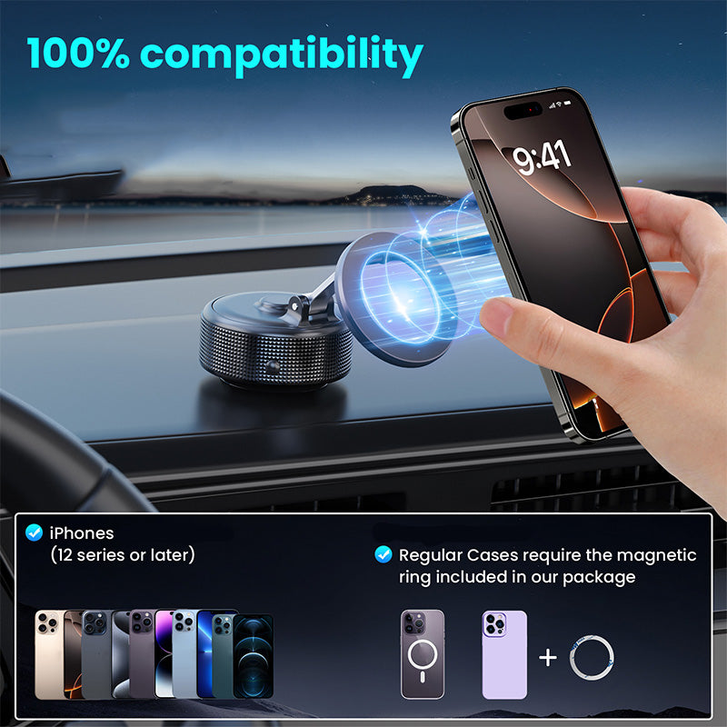 MÁGNESES BIZTONSÁG: Nagy szilárdságú mágneses gyűrűvel ellátott tartó, amely minden mágneses telefonhoz biztonságosan illeszkedik. Nem mágneses eszközök esetén használja a telefon tokjára rögzíthető, mellékelt ragasztós gyűrűt. Akadálymentes utakon is stabil.