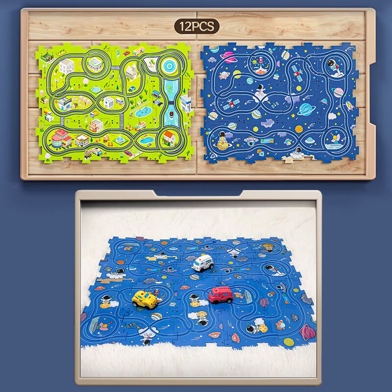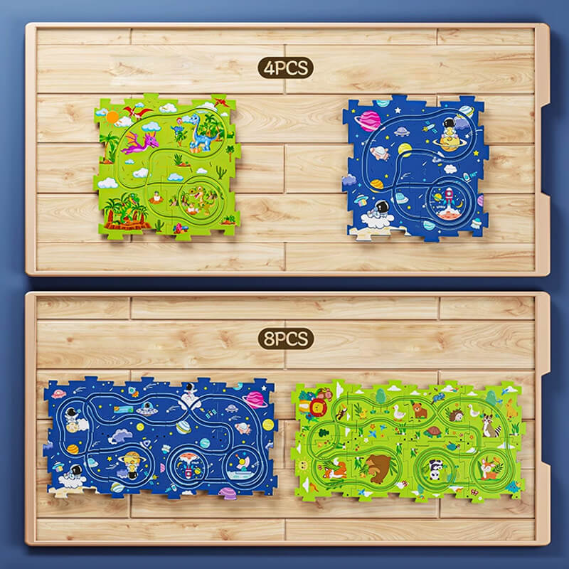 A puzzle-k kiváló minőségű ABS-ből készültek, éles szélek nélküli sima élekkel és sarkokkal rendelkeznek, így biztonságosak a gyerekek számára. Az autó automatikusan halad a pályán, ami szórakoztató és távol tartja a gyerekeket az elektronikus eszközöktől.
