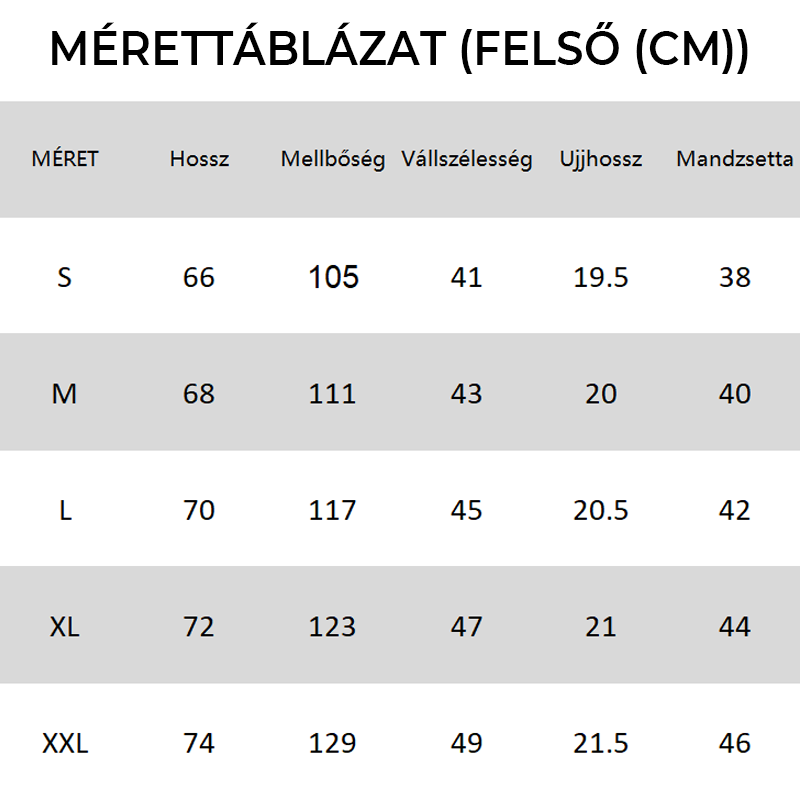 Méret: S, M, L, XL, 2XL