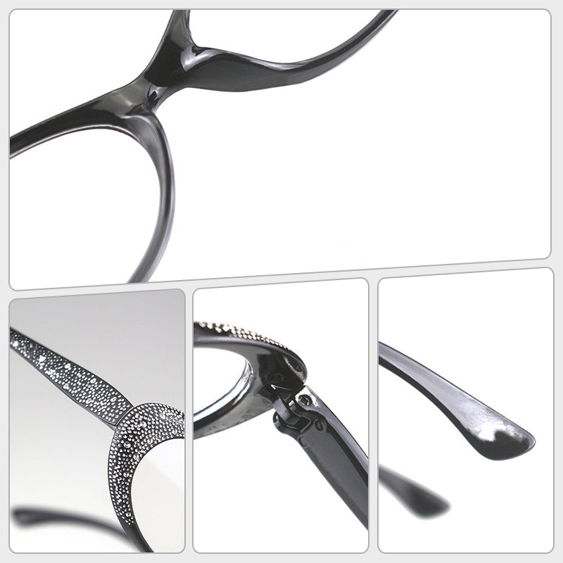 DIVATOS MACSKASZEM DESIGN: A karcsĂș, macskaszemƱ kereten elegĂĄns strasszköves bĂĄjjal ellĂĄtott szemĂŒveg egy csipetnyi csillogĂĄst kölcsönöz megjelenĂ©sĂ©nek, miközben alapvetĆ szemvĂ©delmet nyĂșjt munka vagy olvasĂĄs közben.