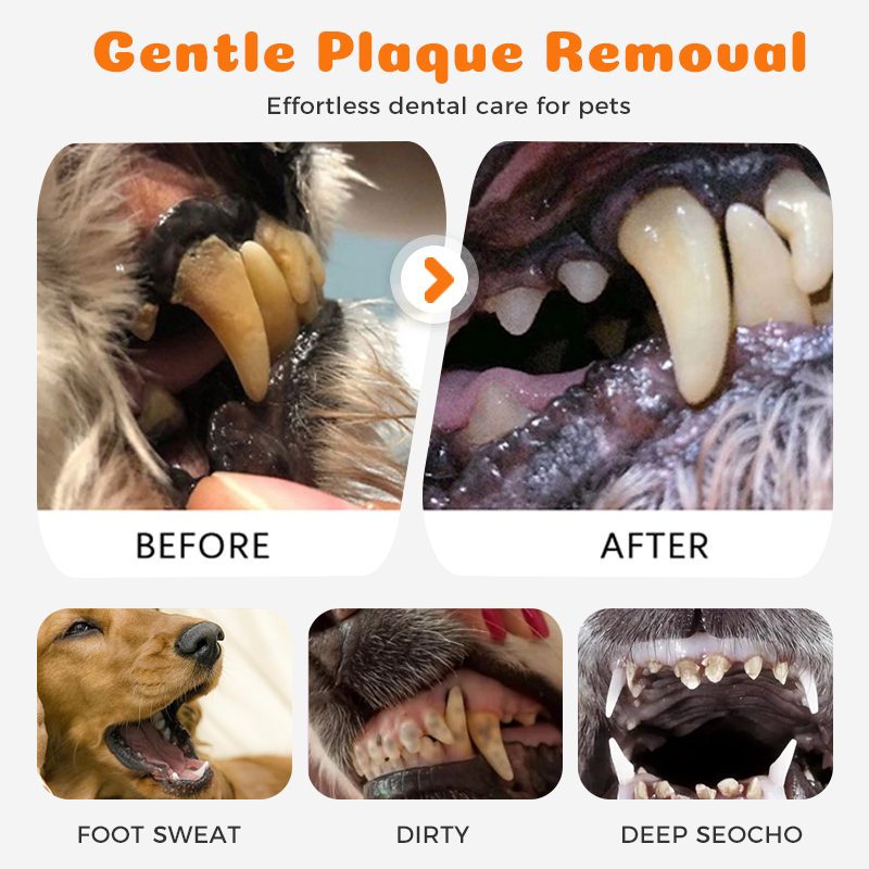 KÍMÉLETES ÉS HATÉKONY TISZTÍTÁS – Gyengéden eltávolítja a makacs lepedéket és fogkövet, erős vegyszerek használata nélkül. Segít javítani kedvence szájhigiéniáját és megelőzni a fogászati betegségeket, biztosítva ezzel kényelmét és egészségét.