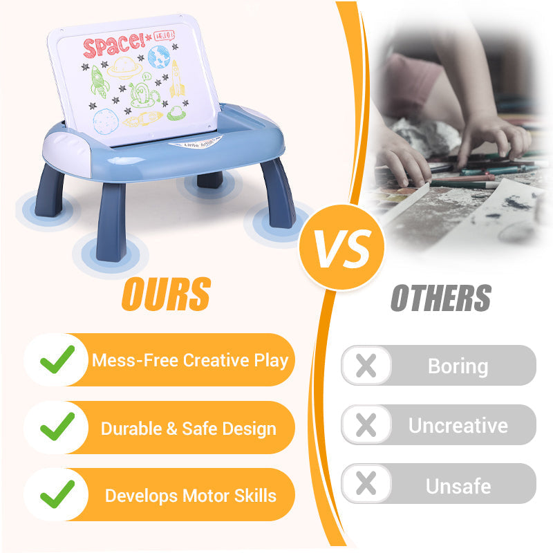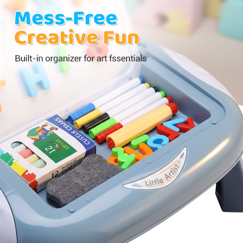SOKOLDALÚ 2-IN-1 KIALAKÍTÁS – Ez a rajztábla rögzíthető lábakkal rendelkezik, így hordozható öltöztetőasztalról mini tevékenységi asztallá alakítható. Rugalmas játéklehetőségeket kínál a padlón, a kanapén vagy az asztalon, bármilyen játékkörnyezethez alkalmazkodva.