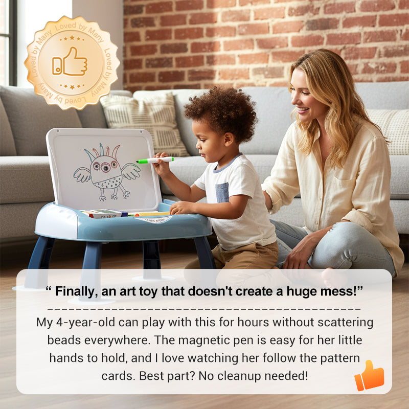 MÁGNESES TOLL JÁTÉK - A mágneses tollal könnyedén irányíthatja a színes gyöngyöket. Ez a szórakoztató tevékenység erősíti a finom motorikus képességeket, javítja a kéz-szem koordinációt, és felkészíti a kis kezeket az írásra, így a tanulás élvezetes és vonzó élménnyé válik.