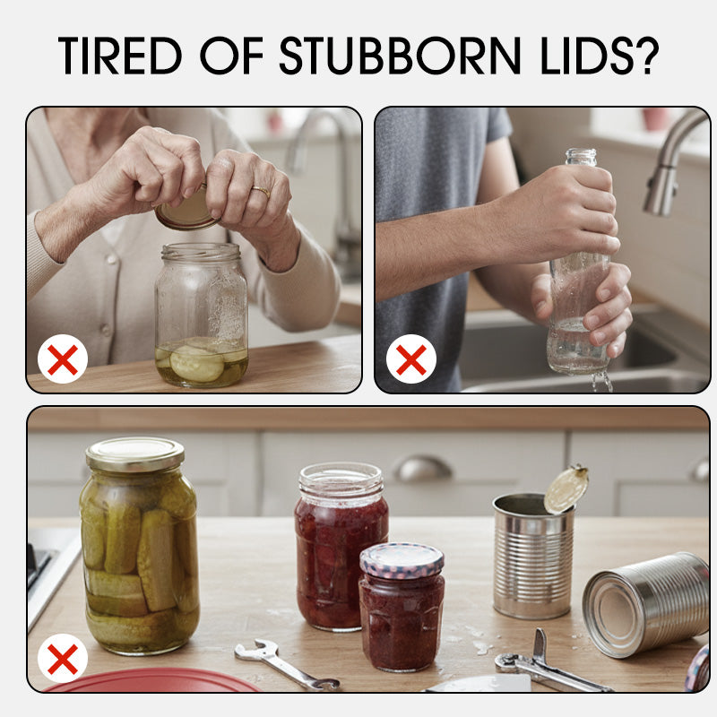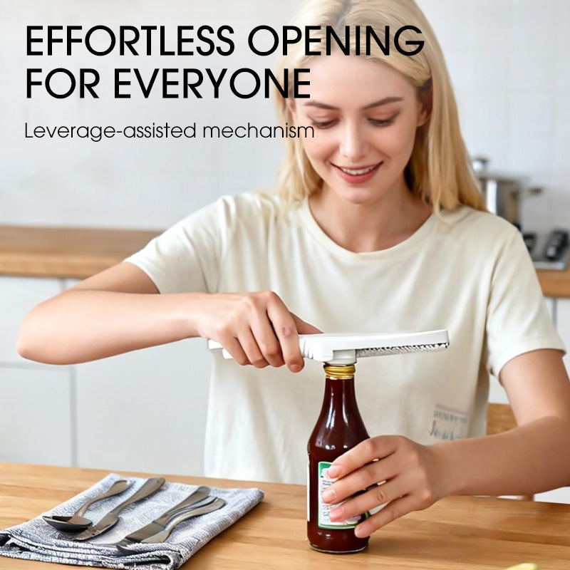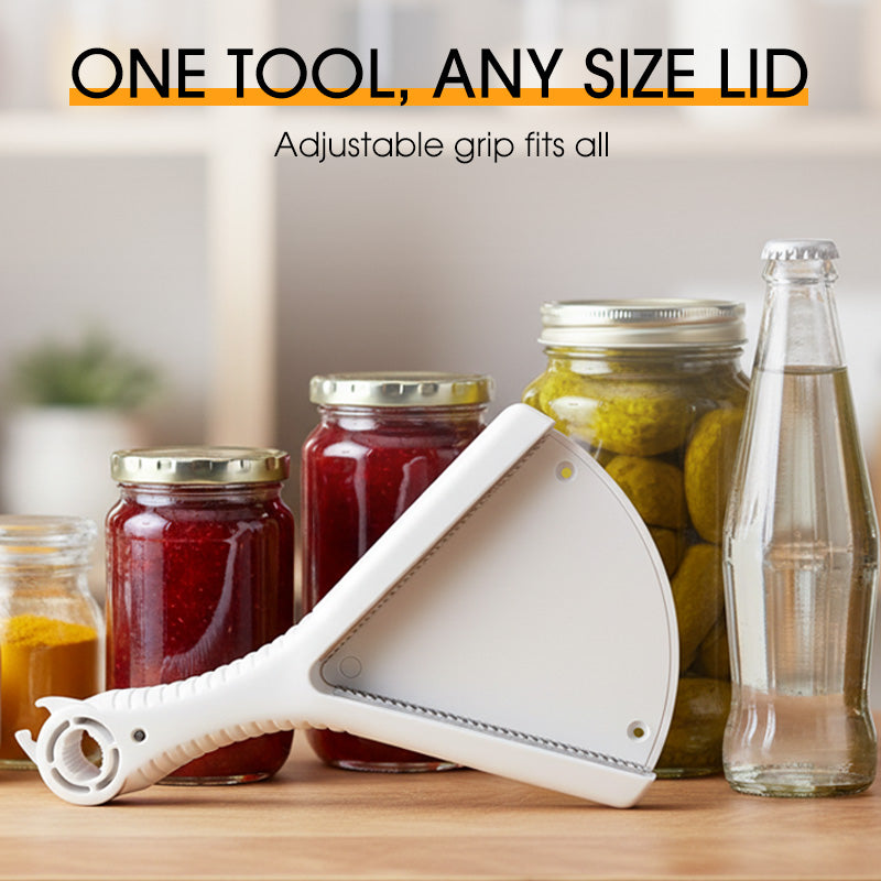 ÁLLÍTHATÓ SOKOLDALÚSÁG: A megnövelt nyílás számos fedélmérethez állítható, a kis szószos üvegektől a nagy savanyúságos üvegekig. Ez az egyetlen eszköz minden nyitási igényt könnyedén kielégít.