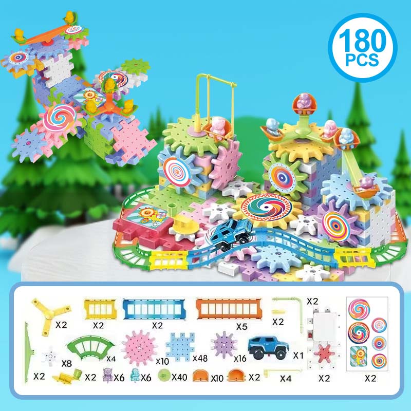 VÉGTELEN KREATIVITÁS – Több, mint egyszerű rakosgatás. Ez a dinamikus készlet lehetővé teszi a gyerekeknek, hogy komplex, mozgó szerkezeteket építsenek fogaskerekekkel és sínekkel, kihívást jelentve képzelőerejüknek, hogy karusszelektől egészen teljes vidámparkokig mindent megalkossanak.