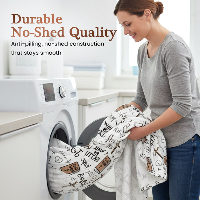 MELEGSÉGGEL KÖTÖZZE BE LELKÉT- Hagyja, hogy ez a takaró inspirálja napját felemelő, hitből inspirált mintájával. A megnyugtató minta értelmet és melegséget ad a térnek, így minden pillanat egy kicsit fényesebbé és megalapozottabbá válik.