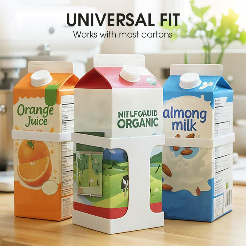 UNIVERZÁLIS ILLESZKEDÉS: Úgy tervezték, hogy a legtöbb szabványos fél gallonos papír kartonba illeszkedjen, amelyekben tejet, gyümölcslevet és egyéb italokat tárolnak. Egyszerűen csúsztassa be a kartont a tartónak, és azonnal biztonságosan rögzül, javítva a kezelhetőséget.