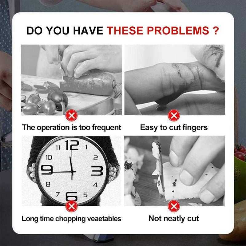 - BIZTONSÁGOS HASZNÁLAT - A zöldségvágó távol tartja a kezet és az ujjakat a pengéktől, így biztonságosabb a szeletelés. Beépített biztonsági funkciókkal tervezték, hogy megvédje Önt a sérülésektől. Élelmiszer minőségű ABS anyagból készült, nem tartalmaz BPA-t, nem mérgező, könnyen tisztítható.