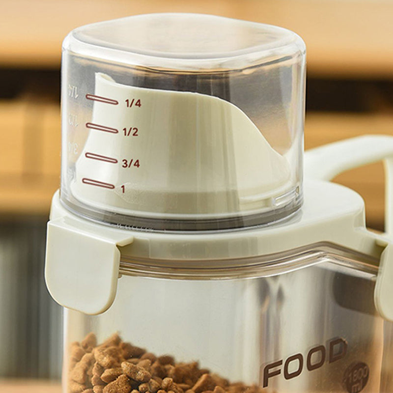 SZÉLES ÖNTŐNYÍLÁS ÉS MÉRŐPOHÁR - Hordozható élelmiszer-tároló edényünk szélesebb öntőnyílással rendelkezik, így az élelmiszerek könnyen kiönthetők, még akkor is, ha nagy darabokat tartalmaznak. (Más márkák öntőnyílásai kicsik, és elzárják a kutyaeledeleket vagy más nagy darabos élelmiszereket). Tartalmaz egy adagoló poharat, amely könnyen rácsavarható az öntőnyílásra, hogy élelmiszere friss és száraz maradjon.