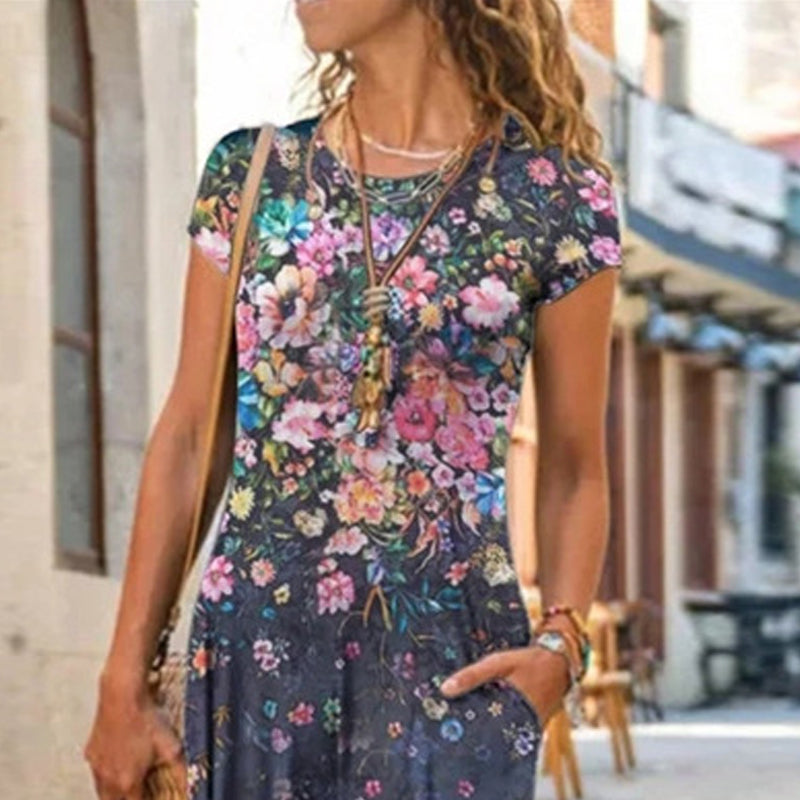 A csomag tartalma: 1 * Női virágmintás rövid ujjú hosszú ruhák
