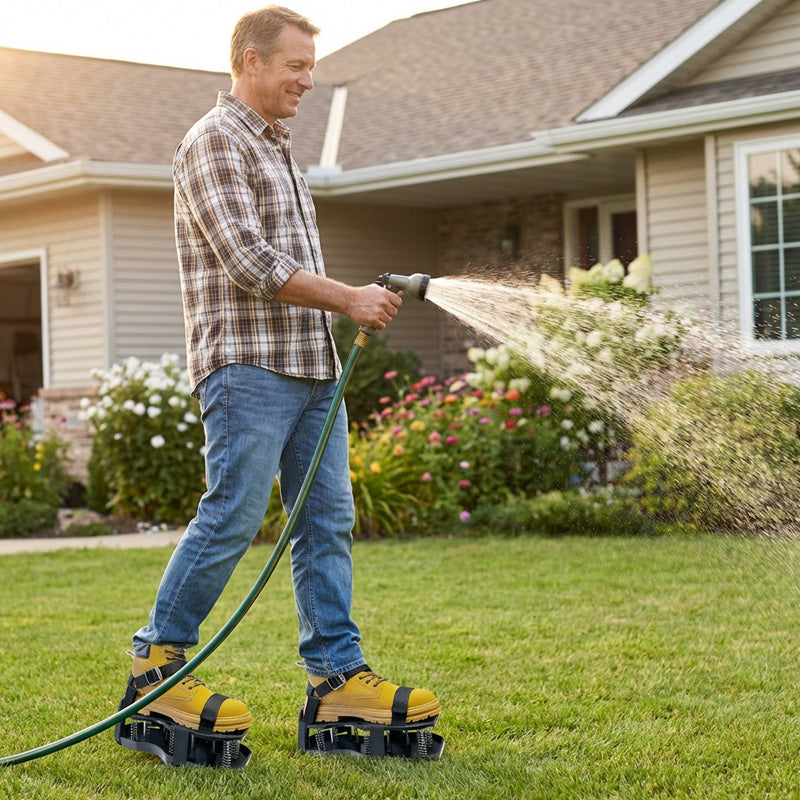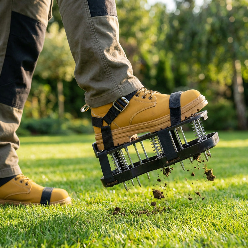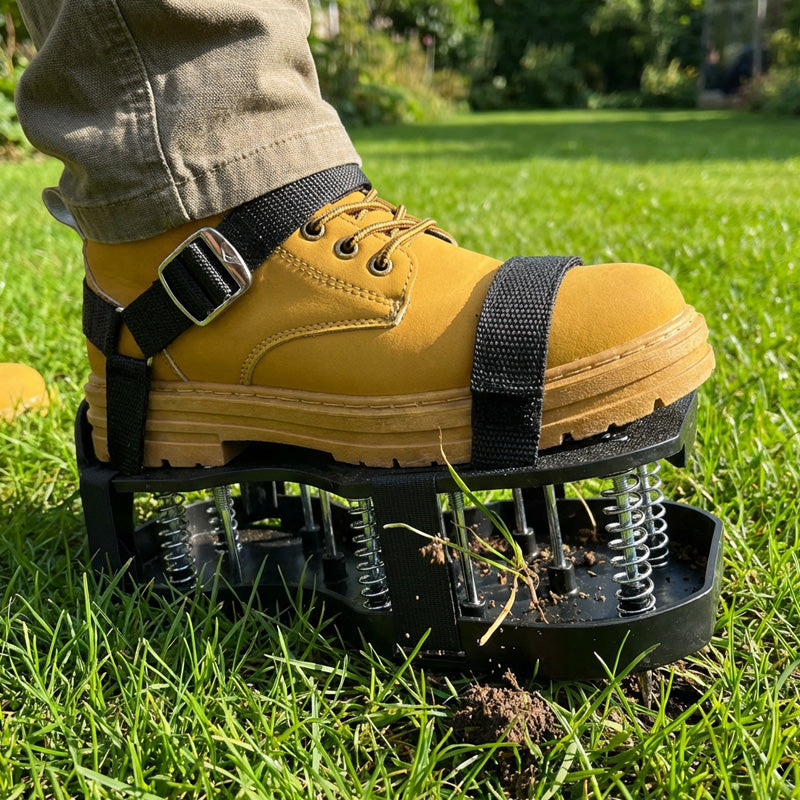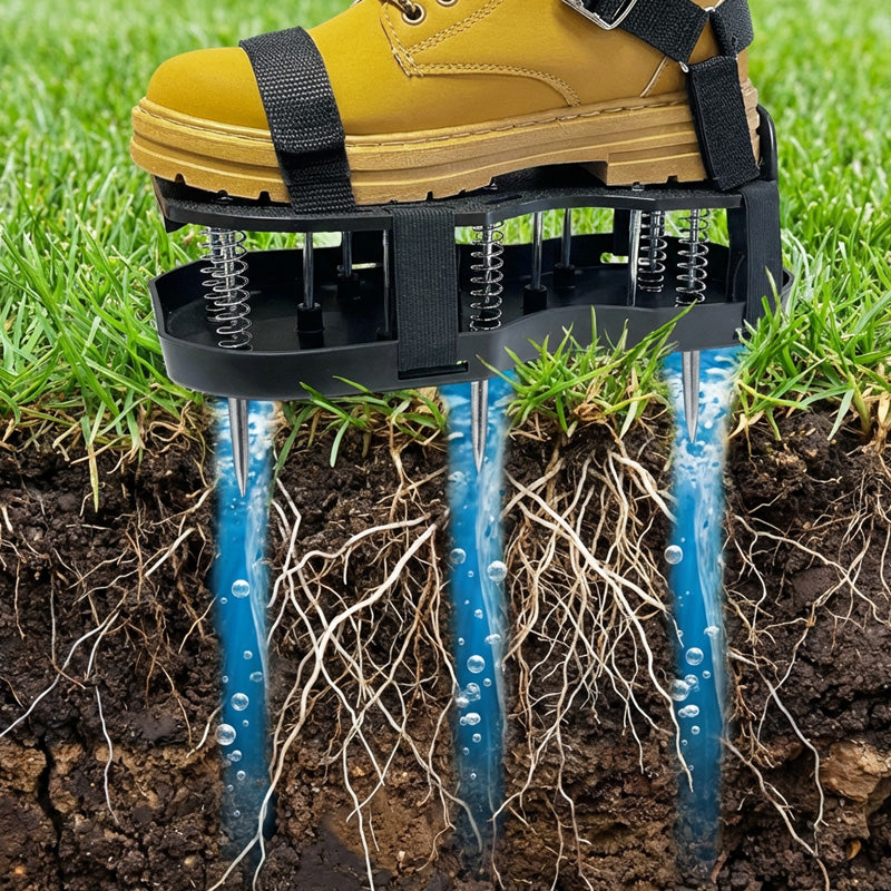 MÉLY TALAJÁTJÁRÁS - Hosszú, erős tüskékkel ellátott cipőink könnyedén átszúrják a tömör talajt, így a létfontosságú levegő, víz és tápanyagok eljutnak a gyökerekhez, és egészségesebb, zöldebb és élénkebb gyepet eredményeznek.