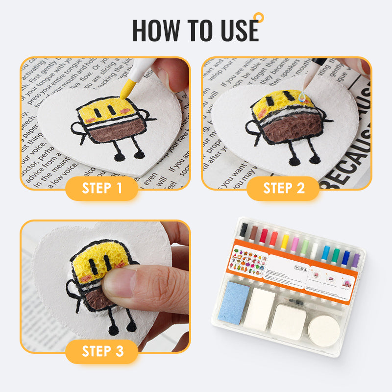 AZONNALI 3D ÁTALAKÍTÁS: Csak vizet kell hozzáadni, és a lapos rajzok varázslatos módon puha, összenyomható 3D-s alkotásokká alakulnak, ami szórakoztató és interaktív művészeti élményt nyújt, amely gyerekeket és felnőtteket egyaránt lenyűgöz.