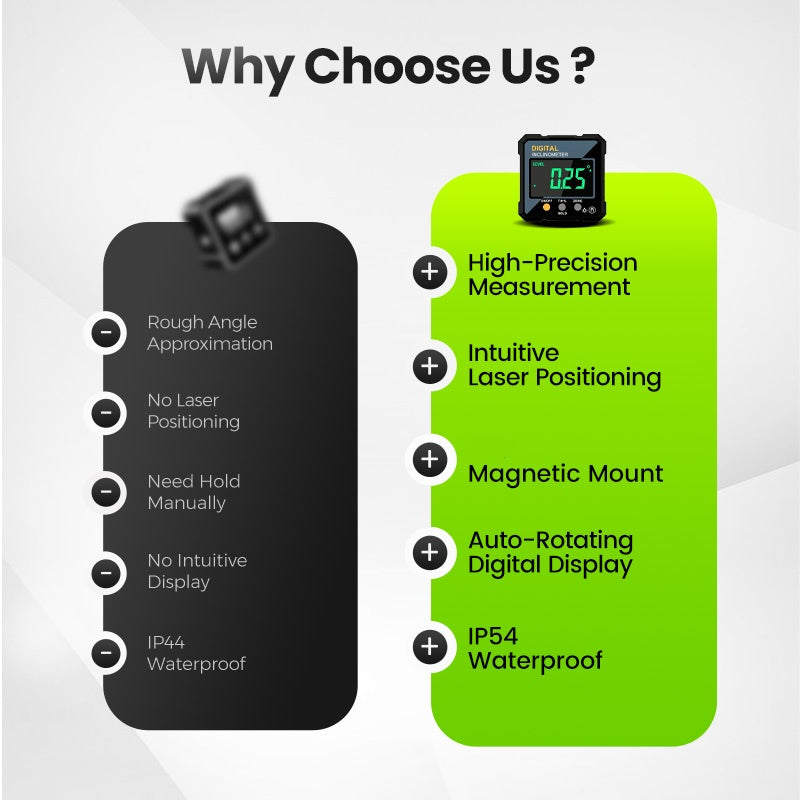 PONTOS MÉRÉS ÉS LÉZERREL KOMPATIBILIS: Rendkívül pontos szögértékeket ad, és lézeres szintezővel együtt használható professzionális igazításhoz asztalosmunkák, építkezések vagy gépek esetén.