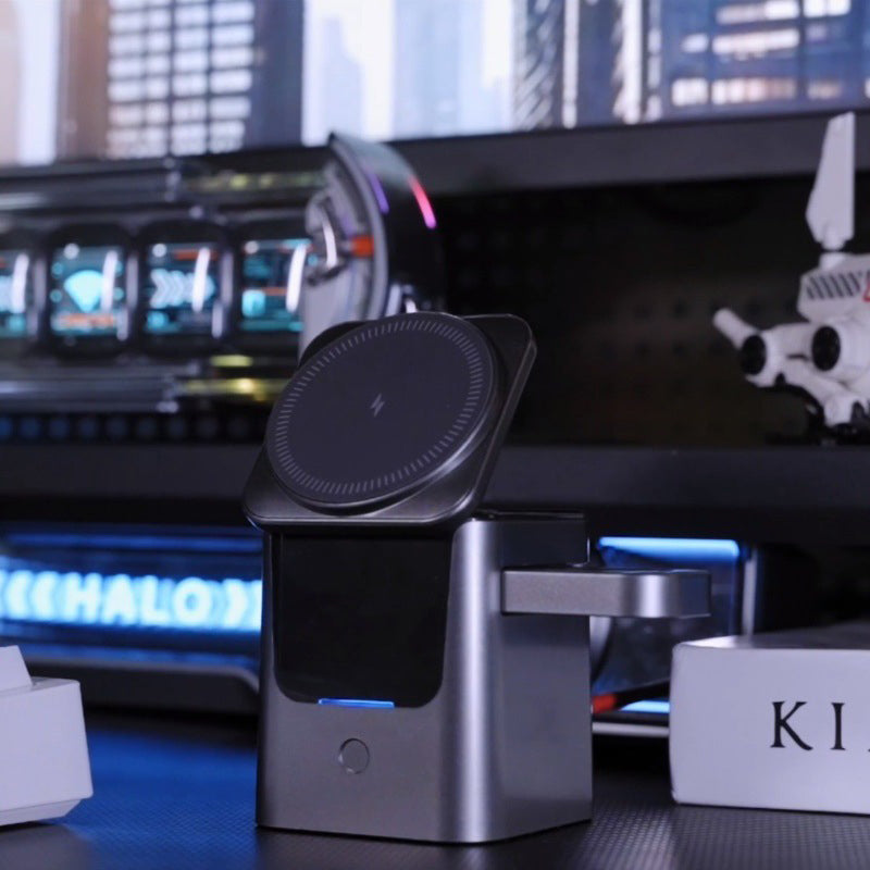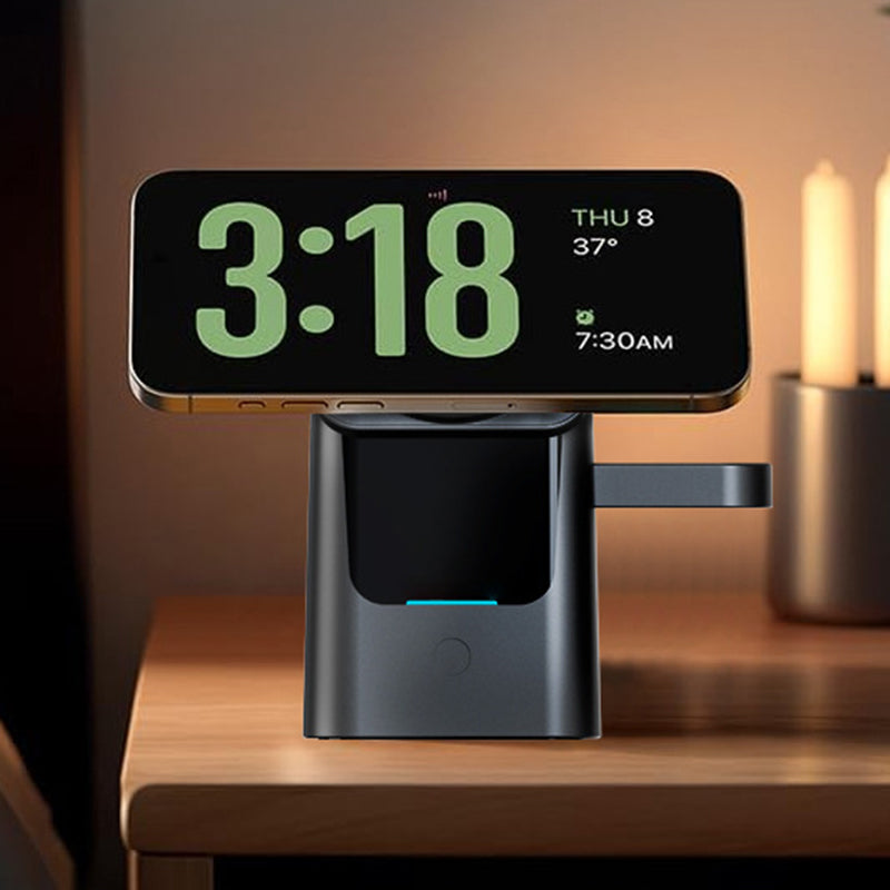 3-IN-1 TÖLTŐKÖZPONT– Töltse fel egyszerre okostelefonját, okosóráját és vezeték nélküli fülhallgatóját. Ez az all-in-one megoldás rendet teremt a munkaterületén, mivel megszünteti a több kábel és adapter használatát, így fontos eszközei mindig készen állnak a használatra.