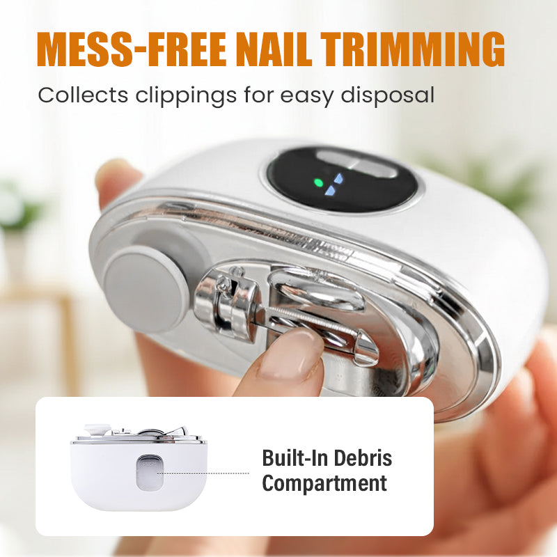 INTEGRÁLT HULLADÉKTÁROLÓ: Használat közben automatikusan összegyűjti a levágott körmöket, megakadályozva a rendetlenséget. A manikűr után egyszerűen ürítse ki a beépített tárolódobozt a gyors és higiénikus tisztítás érdekében, így minden alkalommal rendezett és tiszta marad a helyisége.