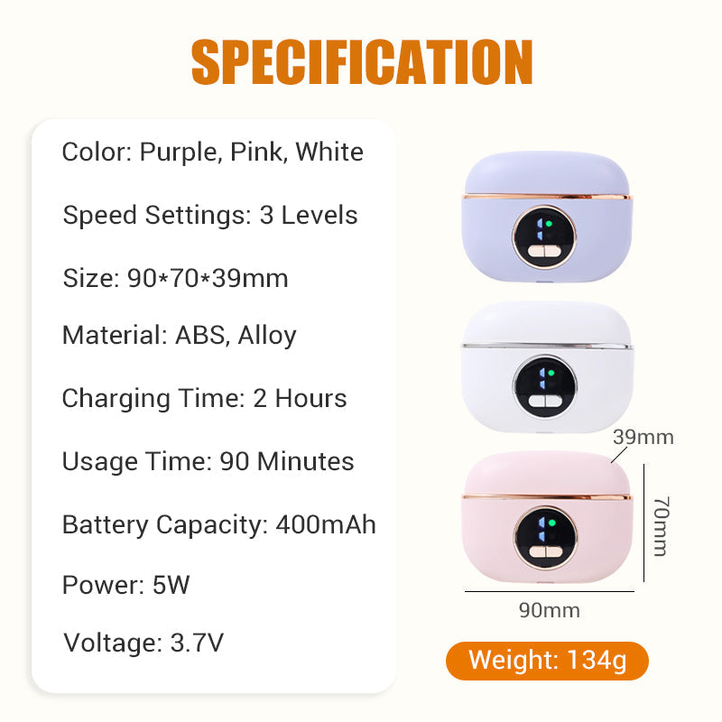 KOMPAKT ÉS ÚJRA TÖLTHETŐ: Könnyű, hordozható kialakítása és nagy kapacitású akkumulátora ideális otthoni vagy utazás közbeni használatra. Egyetlen feltöltéssel akár 90 perc vezeték nélküli működést biztosít, így bárhol kényelmesen ápolhatja a körmeit.