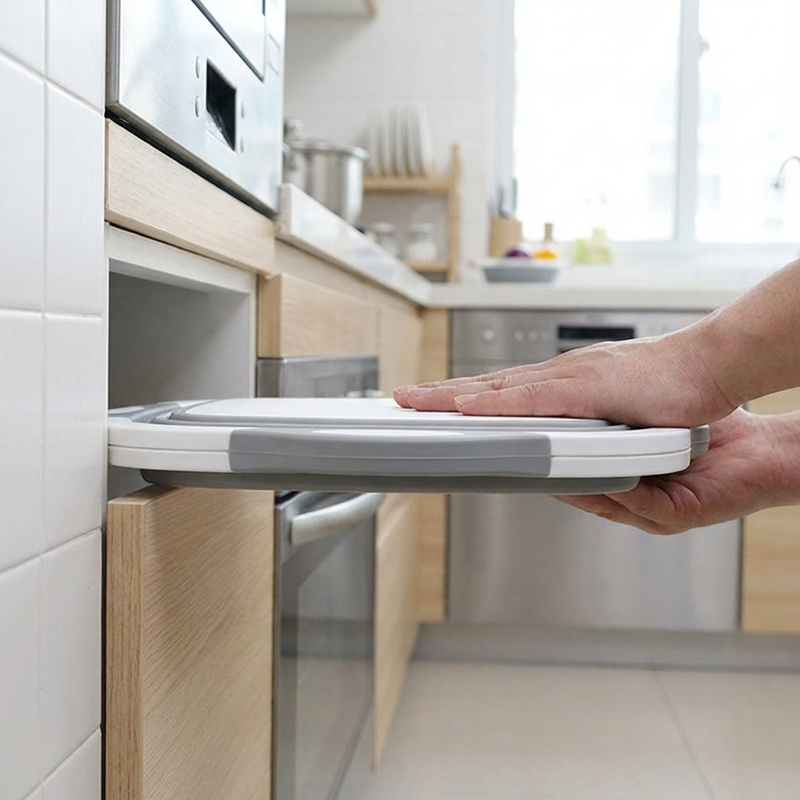 TÖBBFUNKCIÓS KIALAKÍTÁS - Vágódeszka, mosdó és tároló kosár egyben. Ez az intelligens kialakítás egyszerűsíti a konyhai teendőket, értékes helyet takarít meg a pulton és csökkenti a szükséges eszközök számát.