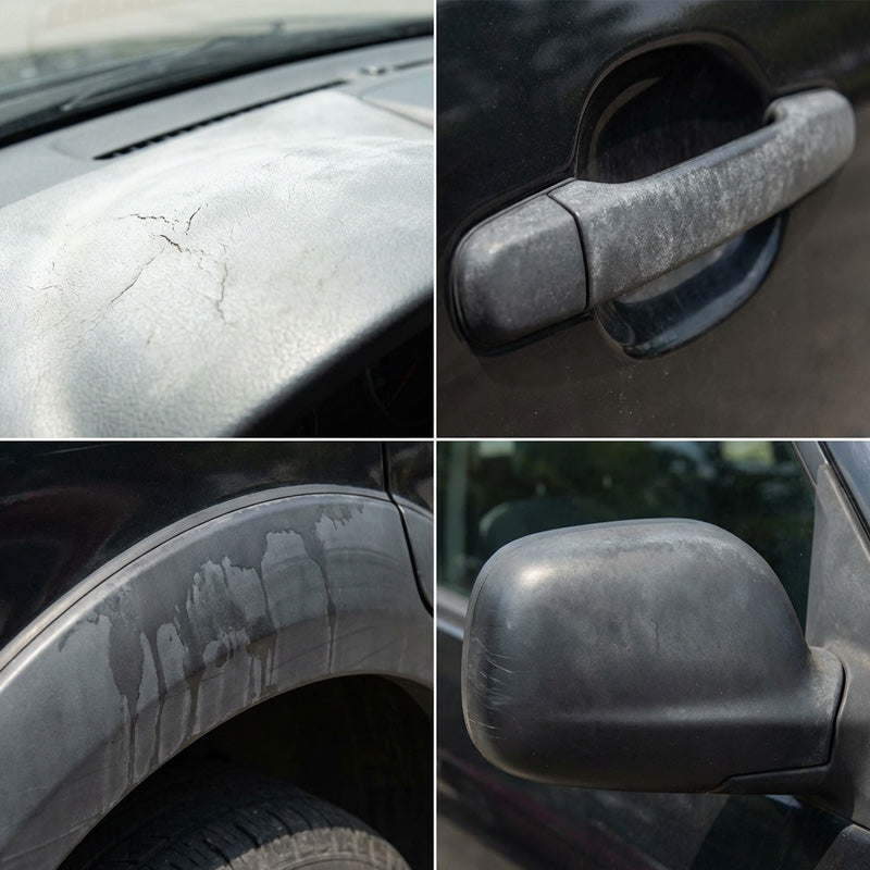 FEJLETT HELYREÁLLÍTÓ FORMULA- Ön is szembesül ezekkel a problémákkal? Az elöregedett műszerfalak, a textúra nélküli ajtókeretek és a kifehéredett műanyag burkolatok rontják járműve megjelenését. Ez a formula mélyen behatol az elöregedett és kifakult műanyag felületekbe, hatékonyan visszafordítva a kifehéredést és az elszíneződést. Visszaadja az eredeti mély, gazdag színt.