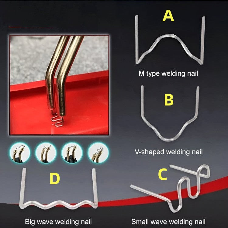 ERĆTELJES ĂS GYORS FưTĂS - ProfesszionĂĄlis javĂtĂłhegesztĆ pisztolyunkkal egyszerƱen vĂĄlassza ki a megfelelĆ kapcsokat, helyezze be a sĂĄrgarĂ©z tartĂłt, nyomja meg a bekapcsolĂł gombot, Ă©s Ă©lvezze a gyors, mindössze 1-3 mĂĄsodperces fƱtĂ©st. Ez a gyors fƱtĂ©si folyamat lehetĆvĂ© teszi, hogy a kapcsok zökkenĆmentesen olvadjanak be a mƱanyag alkatrĂ©szekbe.