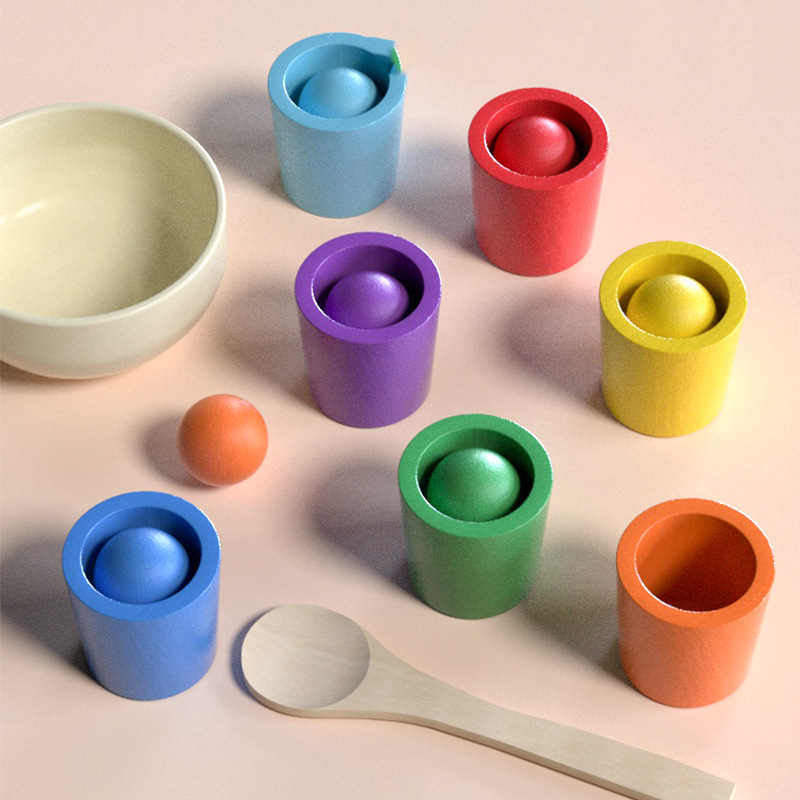 A csomag tartalma: 1 szett* Szivárványos golyók poharakban Montessori játékok kisgyerekeknek