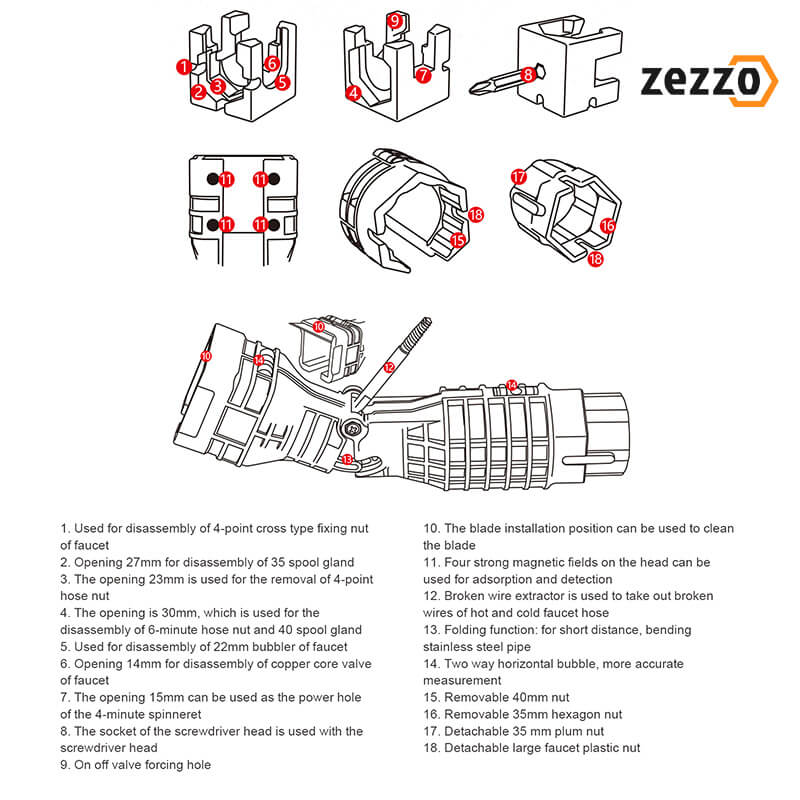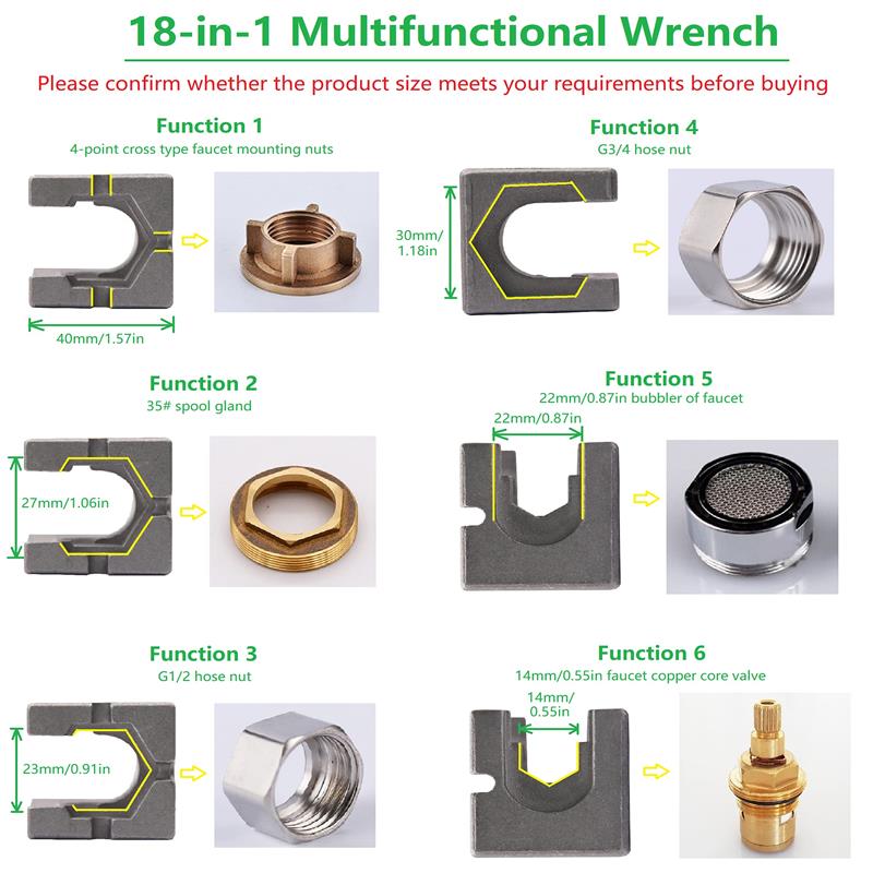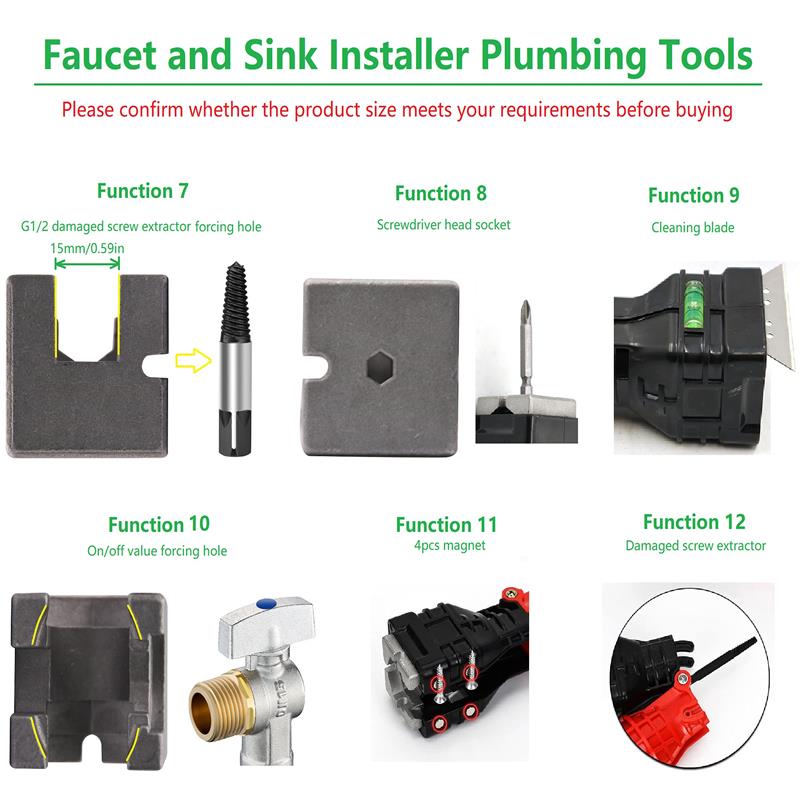 Csaptelep- és mosdószerelőnk alkalmas tápanyák, elzárószelepek, szűrőkosarak, tápvezeték-anyák és csaptelep-anyák szereléséhez. A nyitott résen keresztül könnyen hozzáférhet a meglévő tápvezetékekhez, például csapokhoz, mosdókhoz, vízmelegítő csövekhez, vízmedencékhez stb.