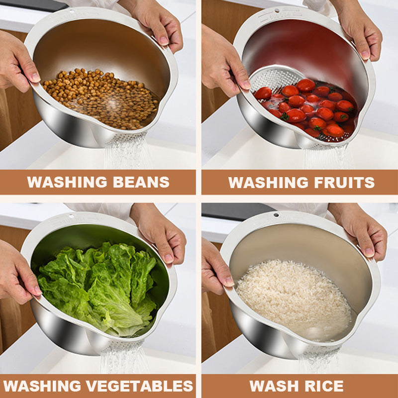 Rozsdamentes acél rizsszűrő tál - Könnyű rizsmosás és -lecsapolás