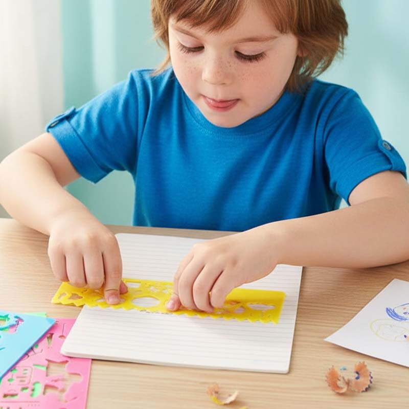 SNADNÉ KRESLENÍ: Tyto šablony se snadno používají a umožňují dětem snadno vytvářet různé vzory a tvary. Hladké hrany zajišťují bezpečné zacházení a zároveň umožňují kreslit pokaždé dokonalé tvary.