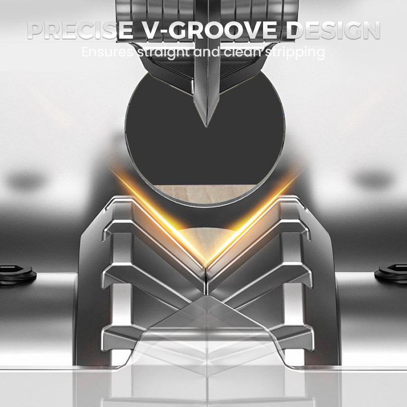 V-GROOVE STABILIZER - A V alakĂș vezetĆdrĂłt szilĂĄrdan tartja a kĂĄbelt a megfelelĆ helyzetben. Ez a kialakĂtĂĄs megakadĂĄlyozza a csĂșszĂĄst vagy az eltĂ©rĂ©st a csupaszĂtĂĄs sorĂĄn, Ăgy tökĂ©letesen egyenes vĂĄgĂĄsok, nagyobb pontossĂĄg Ă©s biztonsĂĄgosabb mƱködĂ©s Ă©rhetĆ el a felhasznĂĄlĂł szĂĄmĂĄra.