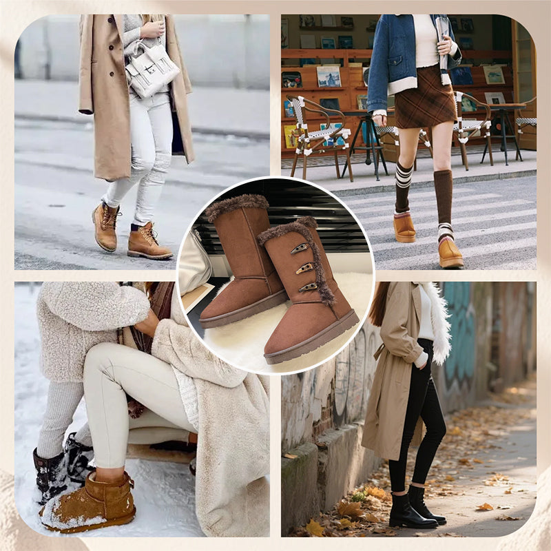 KLASSZIKUS GOMBOS STÍLUS - Időtálló dizájnnal emelje ki téli ruhatárát. A három gombos díszítés klasszikus bájt kölcsönöz a cipőnek, így ez a modell stílusos választás, amely tökéletesen illik leggingshez, farmerhez vagy téli